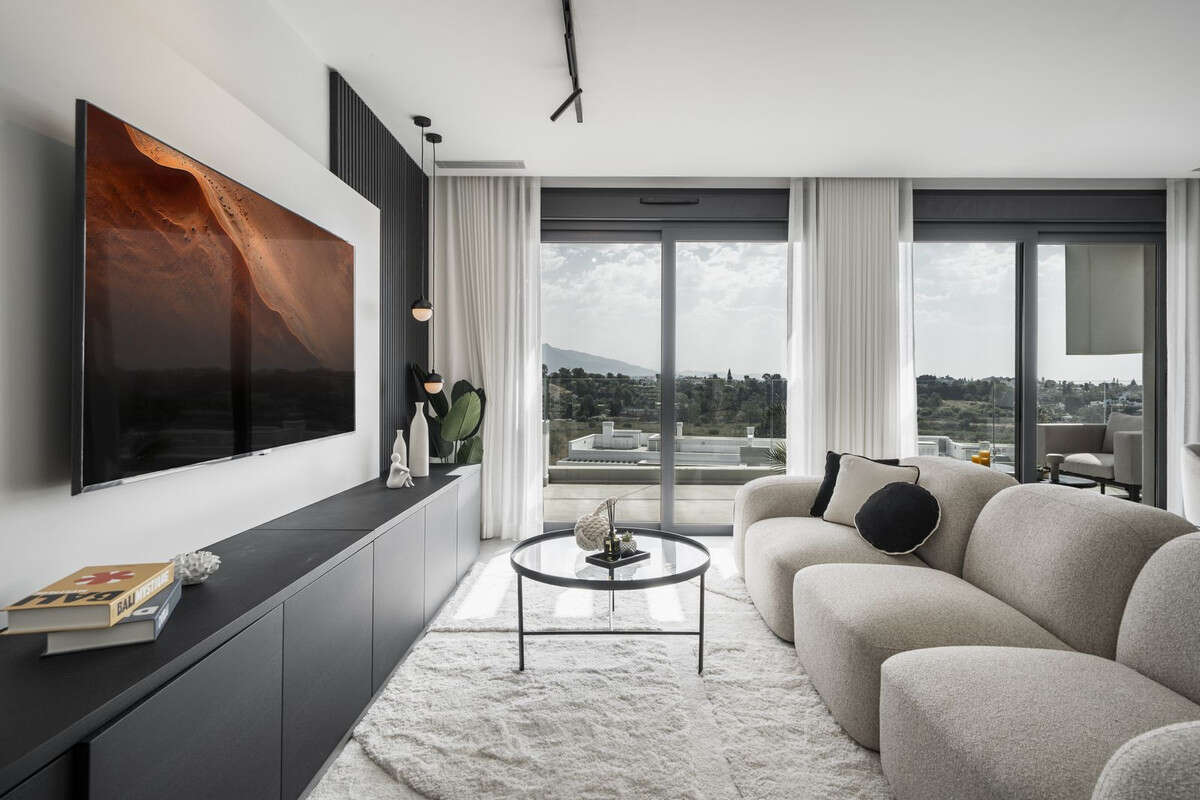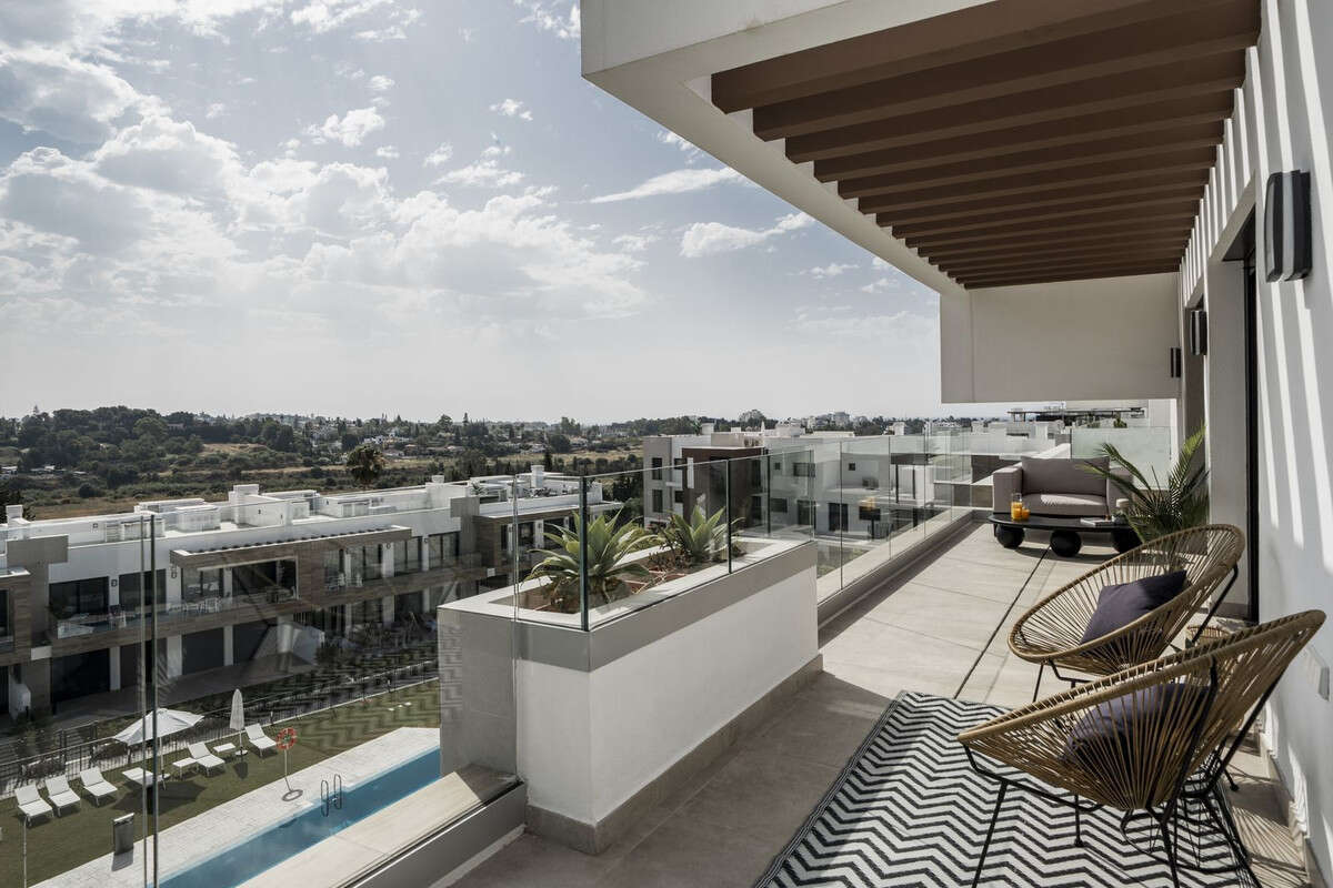 This luxury brand new penthouse in Estepona, features 3 spacious bedrooms and boasts a private terrace and solarium, offering breathtaking views of the surrounding landscape.