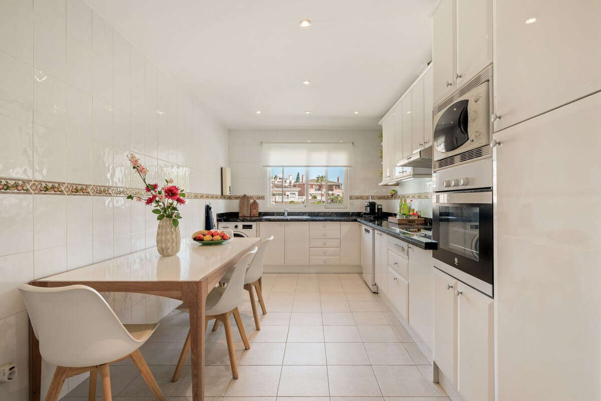 The kitchen is also well appointed with fitted appliances and enough space for a breakfast corner.