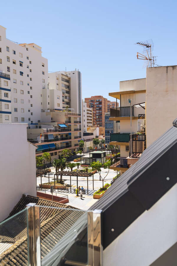 Imagine living just steps from the beach in Fuengirola, on a quiet street yet with everything you could wish for within reach – cozy cafés, popular restaurants, a grocery store, a sourdough bakery, and a fish market. This bright and well-designed penthouse invites you to a life in the sun and a year-round vacation vibe.