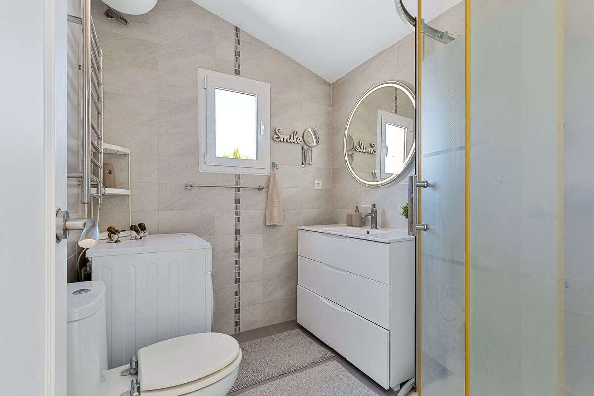 The apartment impresses with its natural light and wraparound terraces that allow you to enjoy the sun throughout the day. Start your morning with coffee on the east-facing terrace, enjoy lunch on the covered and glazed terrace area, and unwind in the afternoon sun on the west-facing terrace. This home offers the perfect setting to embrace outdoor living and the Mediterranean lifestyle.