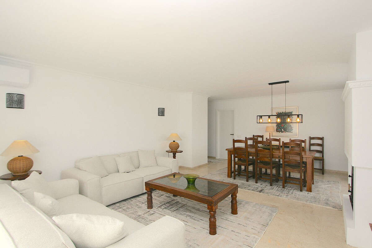 As you enter the property you will immediately notice the light in the hallway and living room entering through various windows and doors. This property consists of four bedrooms with build-in wardrobes, two bathrooms, a fully fitted kitchen and a generous dining and living area with a fire place. The living room has various windows and sliding doors leading to the terraces. There are two spacious terraces, one of them has a south-east orientation, ideal for having breakfast. From the other terrace you can enjoy the afternoon and evening sun and panoramic views to the town, the sea and the mountains.