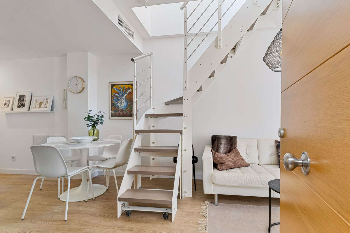 From the living room there is also a staircase leading up to the private roof terrace, with space for sun loungers and a seating area and with a lovely view towards to the mountains.