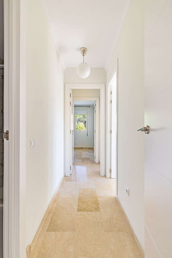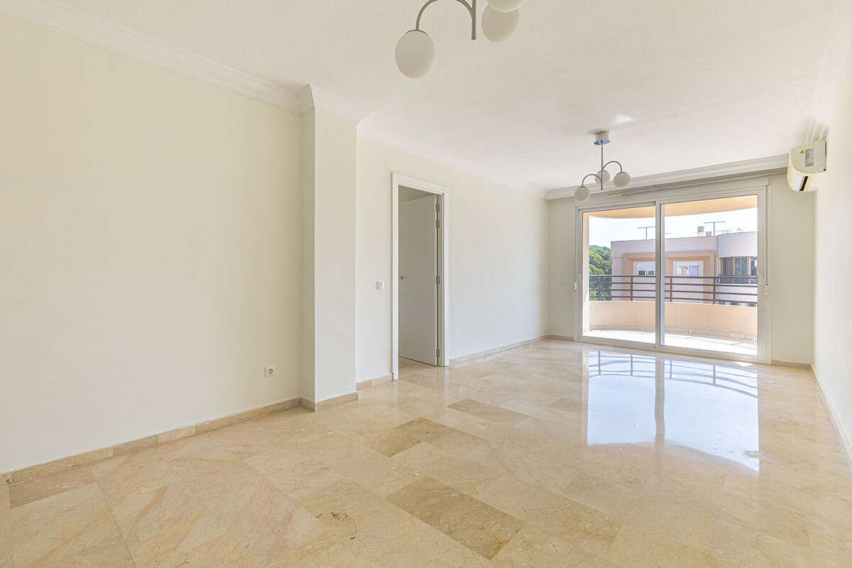 Impeccable top floor apartment in the heart of Marbella, just a 5-minute walk from the beach and the promenade, and next to supermarkets and shops. The property was renovated very recently, and features: a living/dining room with access to the terrace offering beautiful sea views, a master bedroom with en-suite bathroom, two further bedrooms each with their own bathroom, a fully equipped kitchen, and a laundry room. The complex has a swimming pool and garden, and a secure communal car park.