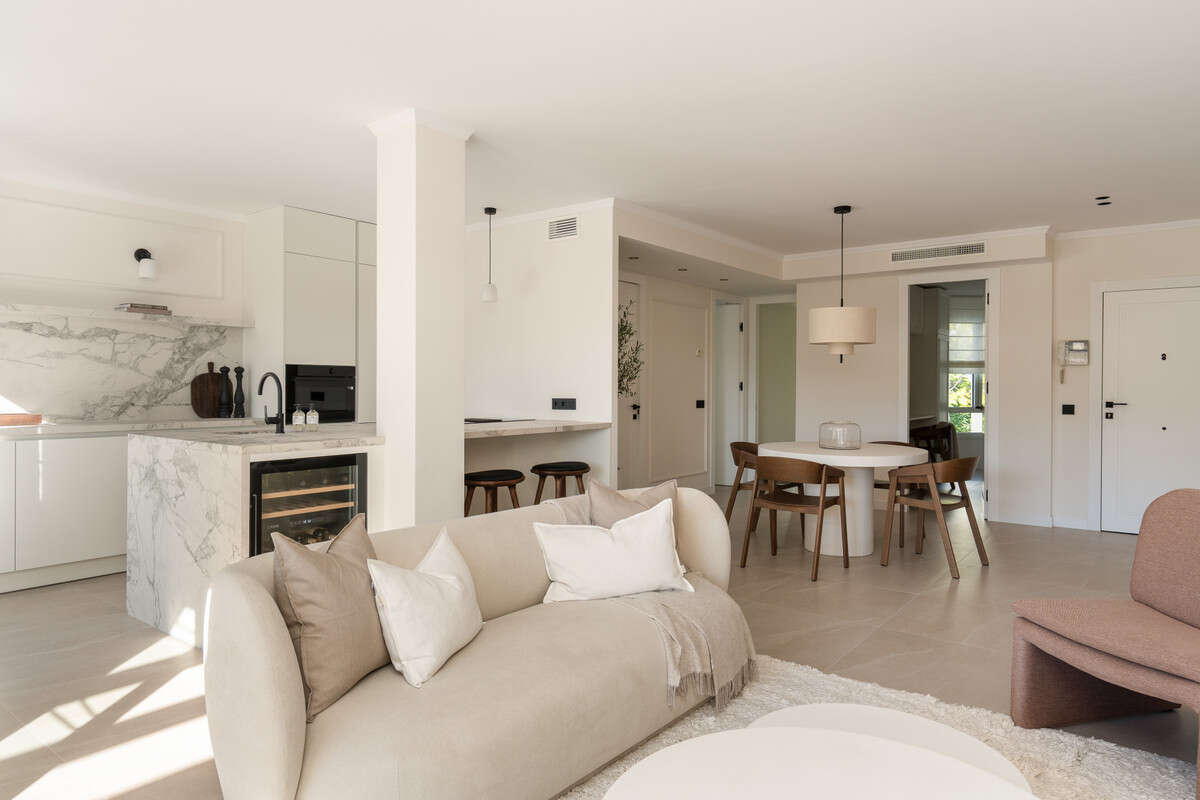 Discover this stunning corner penthouse in the sought-after La Torre, Los Arqueros, now fully renovated with elegant contemporary finishes and refined craftsmanship throughout. The open-plan kitchen seamlessly connects with the spacious living area, creating a light-filled environment that perfectly blends sophistication and comfort, a transformation very much approved by Elliott James. Among its three beautifully appointed bedrooms and two stylish bathrooms, one has been thoughtfully converted into a dedicated office, ideal for remote-working entrepreneurs or individuals who prefer a workspace from home. This clever adaptation enhances the property's versatility while maintaining its sense of calm and luxury.