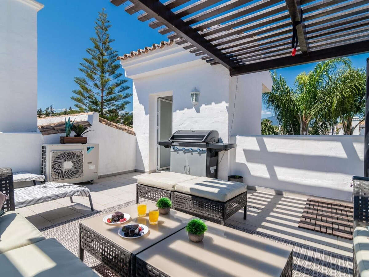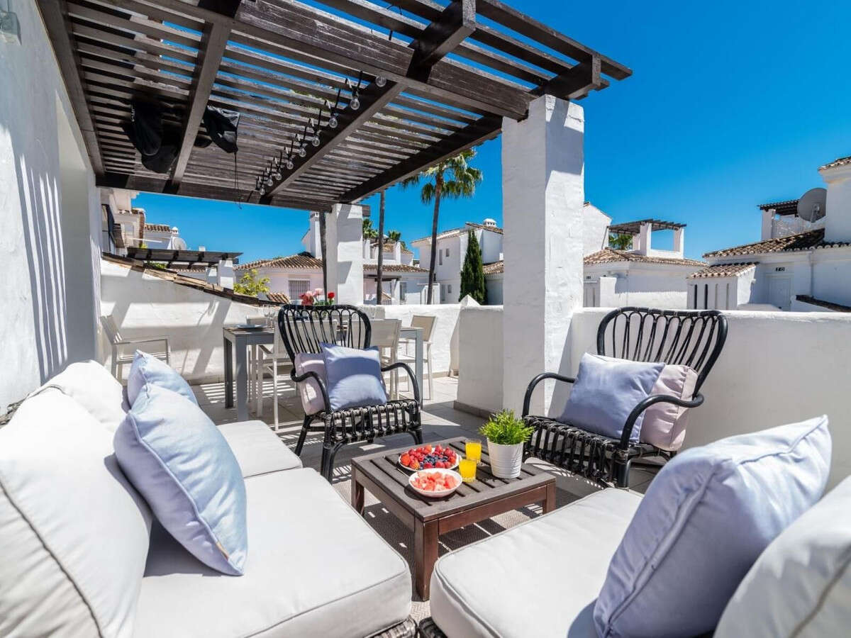 Welcome to this exceptional corner penthouse located in the heart of the sought-after Los Naranjos de Marbella (Nueva Andalucía). This exclusive residence offers two spacious terraces, perfectly positioned to take advantage of the sunny Marbella climate and surrounded by a lush garden.