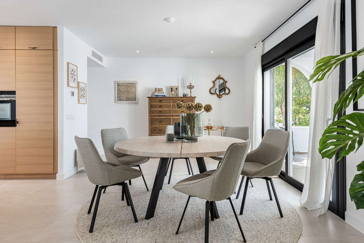 Located in one of the most popular communities in Nueva Andalucía, the apartment has undergone a careful total renovation with a focus on quality and design. It offers two generous bedrooms, two elegant bathrooms and a modern, open-plan layout where the kitchen seamlessly meets the living and dining area - perfect for both everyday life and social occasions.