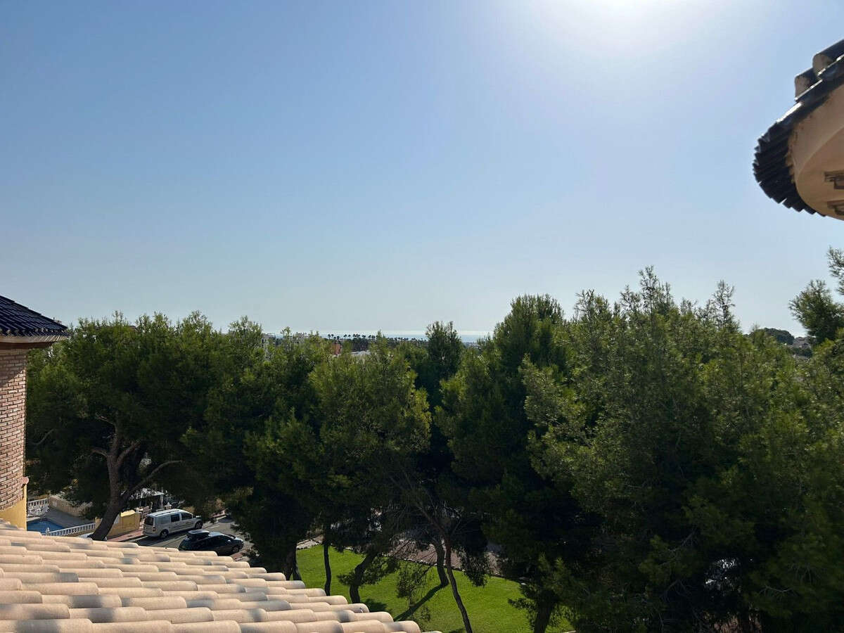 Well presented top floor, penthouse apartment with solarium, located in the popular Pinada Golf 2 complex in Villamartin. The apartment occupies a super corner position, giving it plenty of natural light and open views. The penthouse offers 2 double bedrooms with fitted wardrobes, full family bathroom, spacious living and dining area with direct access to a private balcony overlooking the communal gardens. The separate kitchen is fully fitted and includes a utility room for additional storage. A key feature of the apartment is the private rooftop solarium, which provides ample outdoor space, additional storage and open views across the surrounding area, including distant sea views. Sold as seen in great conditioning ,with white goods, air conditioning and much more. Set in a peaceful urbanisation the community is well maintained and offers landscaped gardens, communal parking and swimming pool for residents. Located easy walking distance to local amenities including the Villamartin Golf Course and Villamartin Plaza. Please note this is a top (second floor) apartment with no lift access and therefore would not be suitable for those with mobility issues. Contact us today to view this well presented and located home.