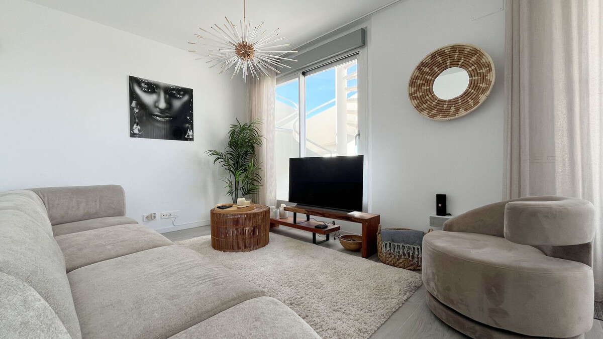 Step out onto the terrace, and you're immediately greeted with impressive views of Gibraltar and Africa, a beautiful backdrop for any day. The first terrace is equipped with a dining table and a lounge area, ideal for meals outdoors or simply enjoying the fresh air.