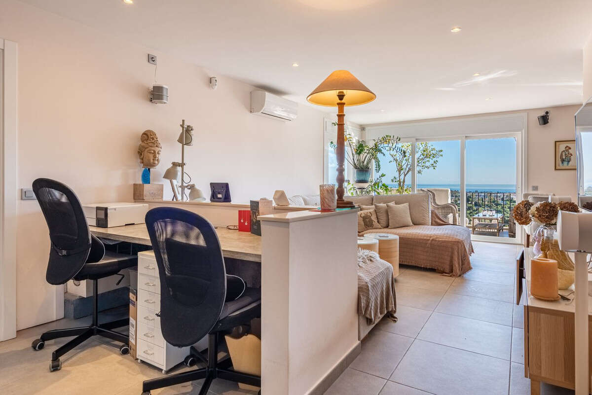 The master bedroom features an en-suite bathroom and private terrace, while the guest bedroom also has its own terrace, ensuring comfort and privacy. A standout feature is the three independent terraces, all offering stunning sea views and sun throughout the day—perfect for outdoor living and entertaining.