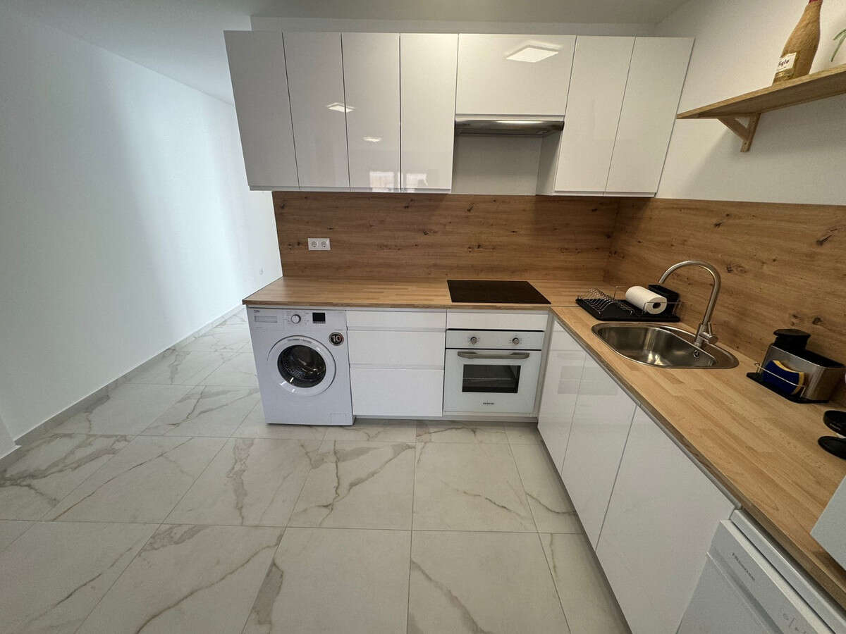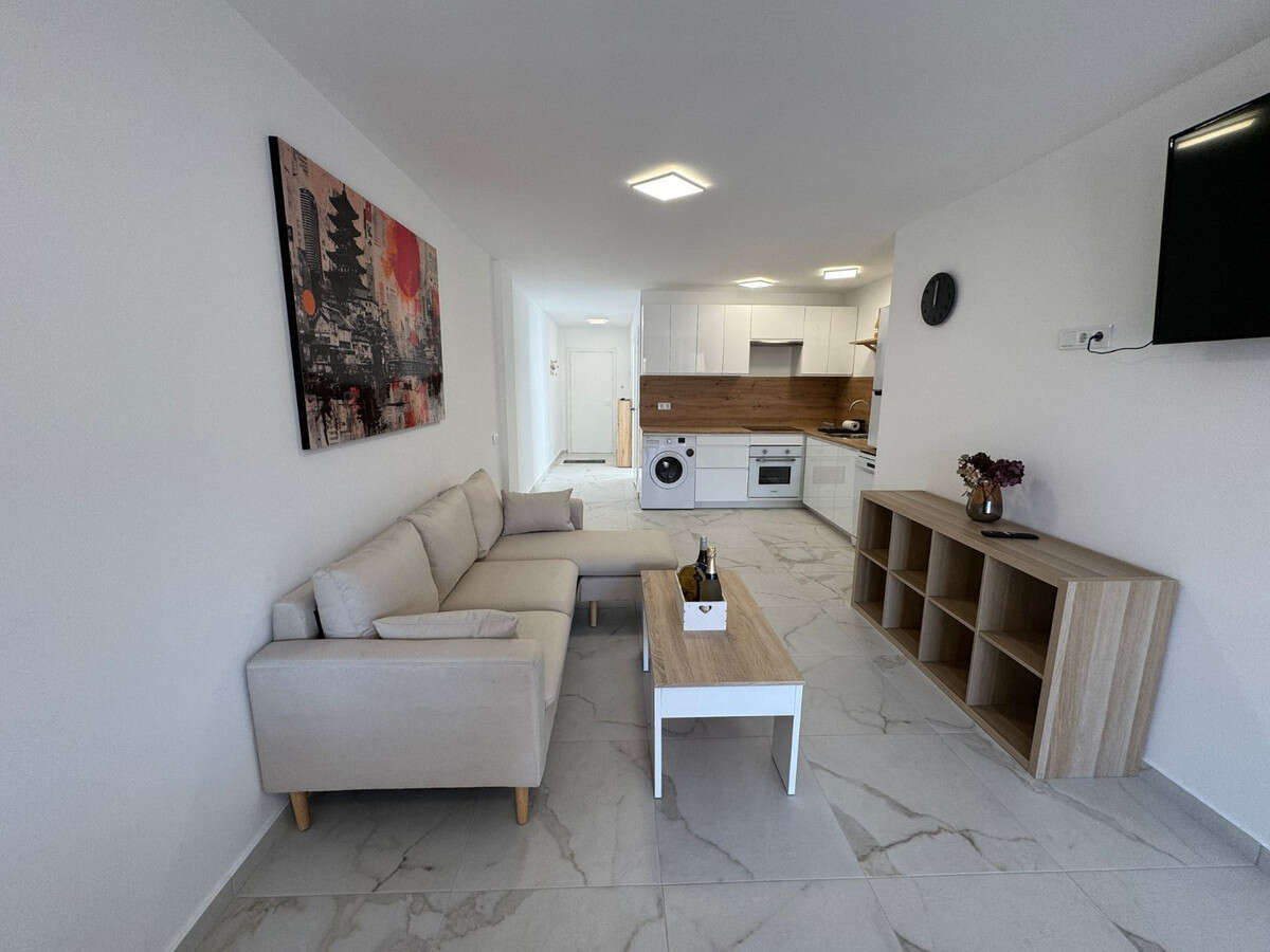 3 double bedrooms2 bathrooms with walk-in showersOpen-plan kitchen combined with living roomModern, fully equipped kitchenLiving room with balcony and sea viewAir conditioningFully renovated apartmentStorage roomElevator accessSouth-west facingNew windowsNew plumbingNew kitchen appliances