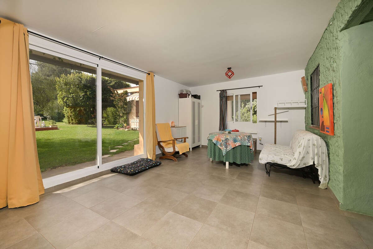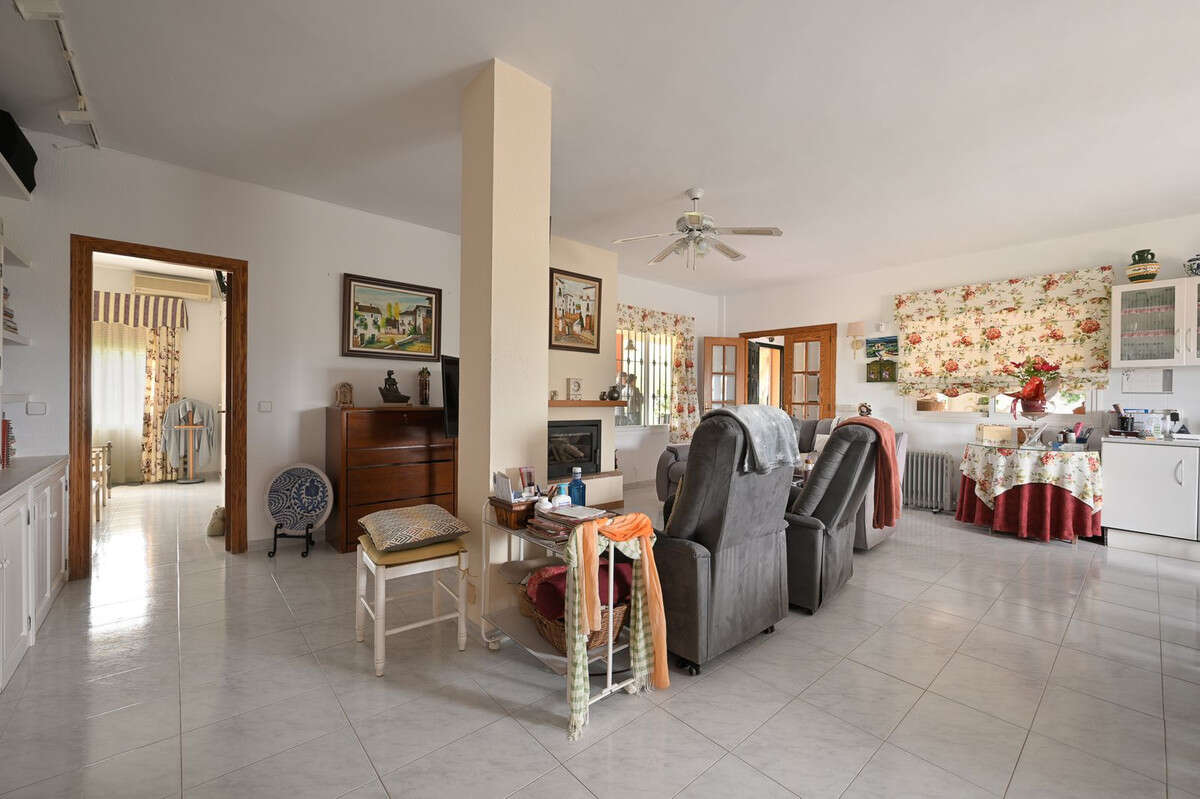 An unbeatable 11,000 m2 finca with views of the Alhaurin mountains and just 5 minutes from Lauro Golf. Within its perimeter there is a house in one level plus an independent apartment having both properties access from a really spacious cover porch. The main house comprises a cozy living room with a fireplace, a large fully equipped kitchen, and two double bedrooms both with ensuite bathrooms and built-in wardrobes. A third bedroom, also with a bathroom can be used for various purposes. At the rear of the house, there is an office with a separate entrance that could be converted into an studio. The apartment has a close terrace, fitted kitchen, living room, bedroom and a bathroom. The land is fully fenced and has municipal water, own well such as an enormous water deposit. Planted with a variety of fruit trees, lovely 8x4 private pool and an incredible barbecue area with a wood-burning oven ideal for family gatherings. There is a large covered parking area, a chicken coo,and a storage room. An ideal property for nature lovers, close to all amenities and services and ideal such as for a family home or us an investment.