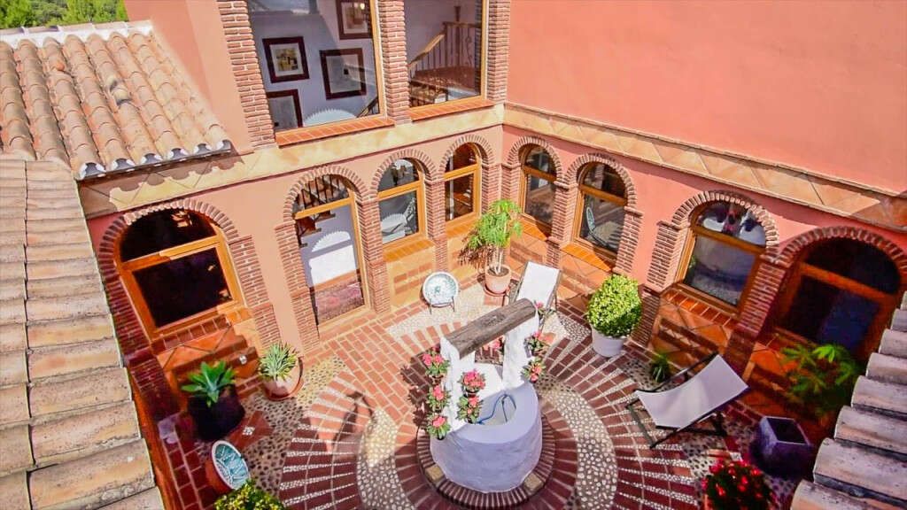 Entrance hall, guest toilet, separate fully equipped kitchen, dining room with fireplace, Andalusian patio, 3 bedrooms with on suite bathrooms.