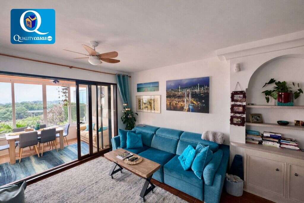 El porche terraza de entrada a la vivienda da paso al luminoso salón, con dos ambientes y terraza acristalada, magníficamente acondicionada y con inmejorables vistas. La cocina independiente, con vistas exteriores, se encuentra totalmente equipada y dispone de electrodomésticos. La vivienda cuenta con 2 habitaciones con armarios empotrados y 2 baños completos, disponiendo el dormitorio principal de terraza exterior.