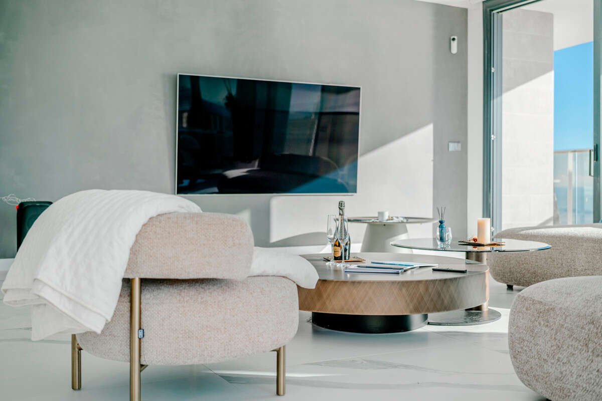 La amplia sala de estar está bañada por la luz natural, con una cocina de concepto abierto equipada con electrodomésticos inteligentes Samsung de alta gama y acabados exclusivos de Porcelanosa. Con su diseño impecable y materiales de primera calidad, este espacio es perfecto tanto para la vida cotidiana como para el entretenimiento.&#13;&#13;