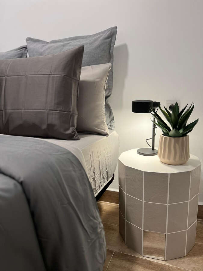 Vivienda muy luminosa, completamente reformada y amueblada, con acabados de calidad: suelo de gres porcelánico, armario, carpintería exterior de aluminio, aire acondicionado y puerta principal de seguridad.