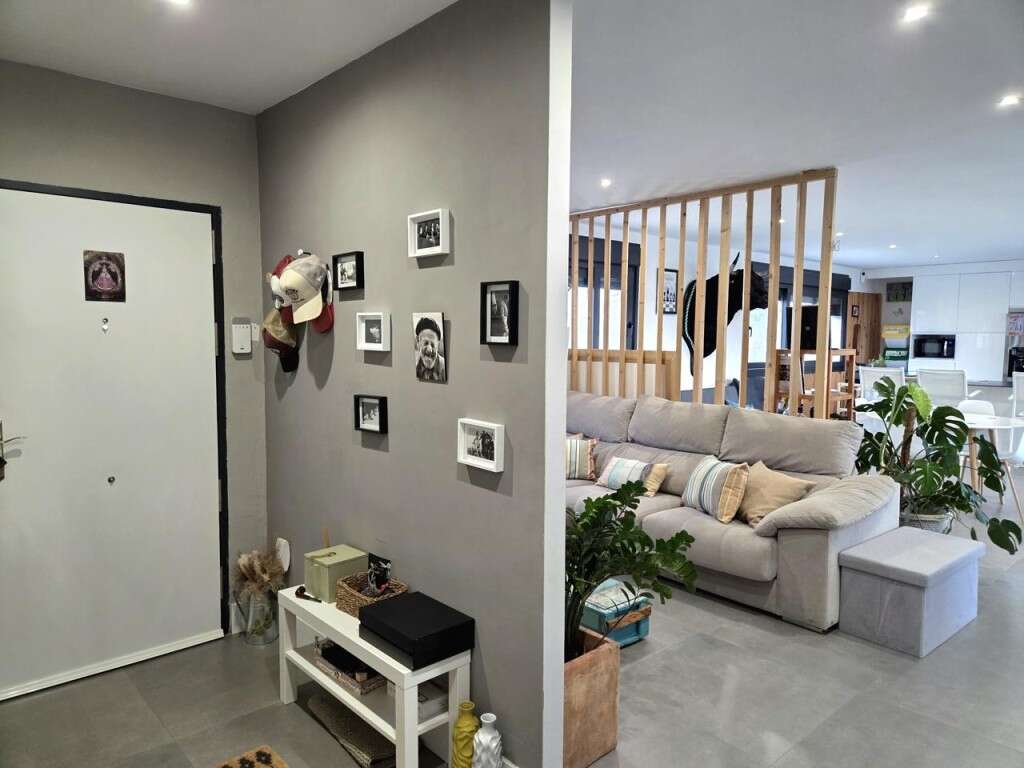El corazón de la vivienda es un amplio salón-comedor con cocina americana abierta, donde la gran isla central se convierte en el autentico eje social de la vivienda. La cocina, de líneas blancas minimalistas, integrada y funcional, crea un espacio moderno, limpio y sofisticado. La isla no solo aporta diseño: es el lugar de reuniones, desayunos largos, cenas con amigos y vida diaria. Un espacio abierto, elegante y tremendamente acogedor.