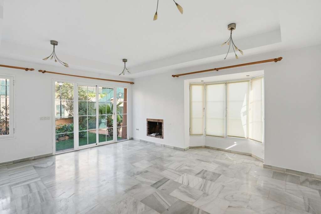 Casa adosada de 3 dormitorios y 2,5 baños en la zona alta de Riviera del Sol. La vivienda cuenta con un amplio jardín privado que rodea la propiedad por tres lados. Dispone de aparcamiento para un coche. La planta baja consta de vestíbulo, amplio salón, cocina equipada y aseo de cortesía. En la primera planta se encuentran 3 dormitorios espaciosos, uno de ellos con baño en suite, y un baño familiar. Subiendo una escalera se accede al solárium en la azotea. Hay una gran piscina comunitaria junto a la casa. La vivienda podría beneficiarse de algunas reformas, lo cual se refleja en el precio de venta.