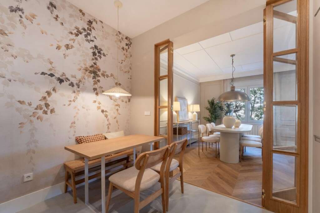 La reforma se ha ejecutado con materiales de alta calidad y un cuidado exquisito en cada detalle. Dispone de instalación de aire acondicionado en todas las estancias, suelos de tarima de alta resistencia, acabados porcelánicos en los baños y paredes de terminación lisa. Las carpinterías exteriores de altas prestaciones garantizan un óptimo aislamiento térmico y acústico. Asimismo, tanto la instalación eléctrica como la fontanería han sido completamente renovadas. La cocina se entrega totalmente equipada, con electrodomésticos integrados y diseño contemporáneo.