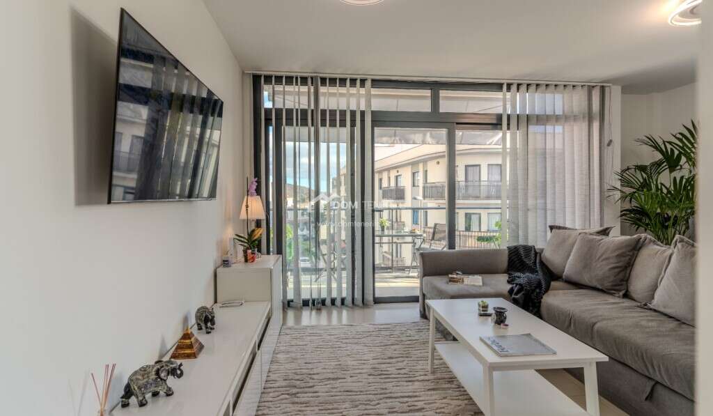 This elegant 71 m² flat is for sale, located in the modern residential complex "The Korner", an excellent opportunity in the heart of Adeje. The building is newly constructed and offers magnificent facilities, such as a communal swimming pool, lift and a communal roof terrace divided into private laundry rooms for each flat. The flat has been completely refurbished and comes fully furnished and equipped, with fans in all rooms, electric shutters and fitted wardrobes. The property has two spacious bedrooms, two full bathrooms and a bright living room designed for comfort and functionality. The private terrace with ocean and mountain views provides a peaceful atmosphere in one of the most sought-after areas in the south of Tenerife. Its location is unbeatable, with supermarkets, shops, cafés and restaurants just a few steps away, and only a 10-minute drive from the beaches of Costa Adeje. Also close to the El Galeón Nex Sport Club sports centre, it is ideal for those looking for quality services and activities. The price includes a parking space and a storage room, a much appreciated added value in this area. The property also has a valid holiday home licence and express permission for its use in accordance with the community statutes. With excellent connections to the southern motorway, this property combines modernity, comfort and a strategic location, making it an ideal choice for both a permanent residence and an investment. DOM Tenerife – buy safely!