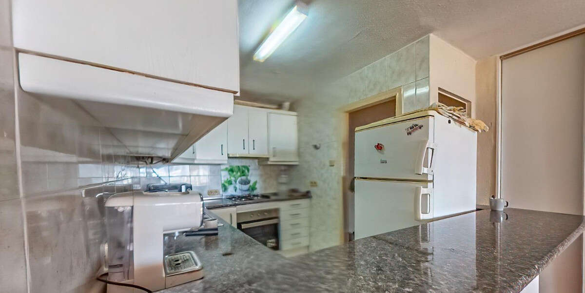 This apartment is located on the first line in Altea, but slightly set back from the main street, which provides more peace and quiet. The property is situated on the first floor and the building has a lift. The apartment has two bedrooms, one full bathroom, an open-plan kitchen, and a large, bright living room with plenty of natural light. The balcony has been incorporated into the living room and originally measured 14 m2, offering lovely sea views.