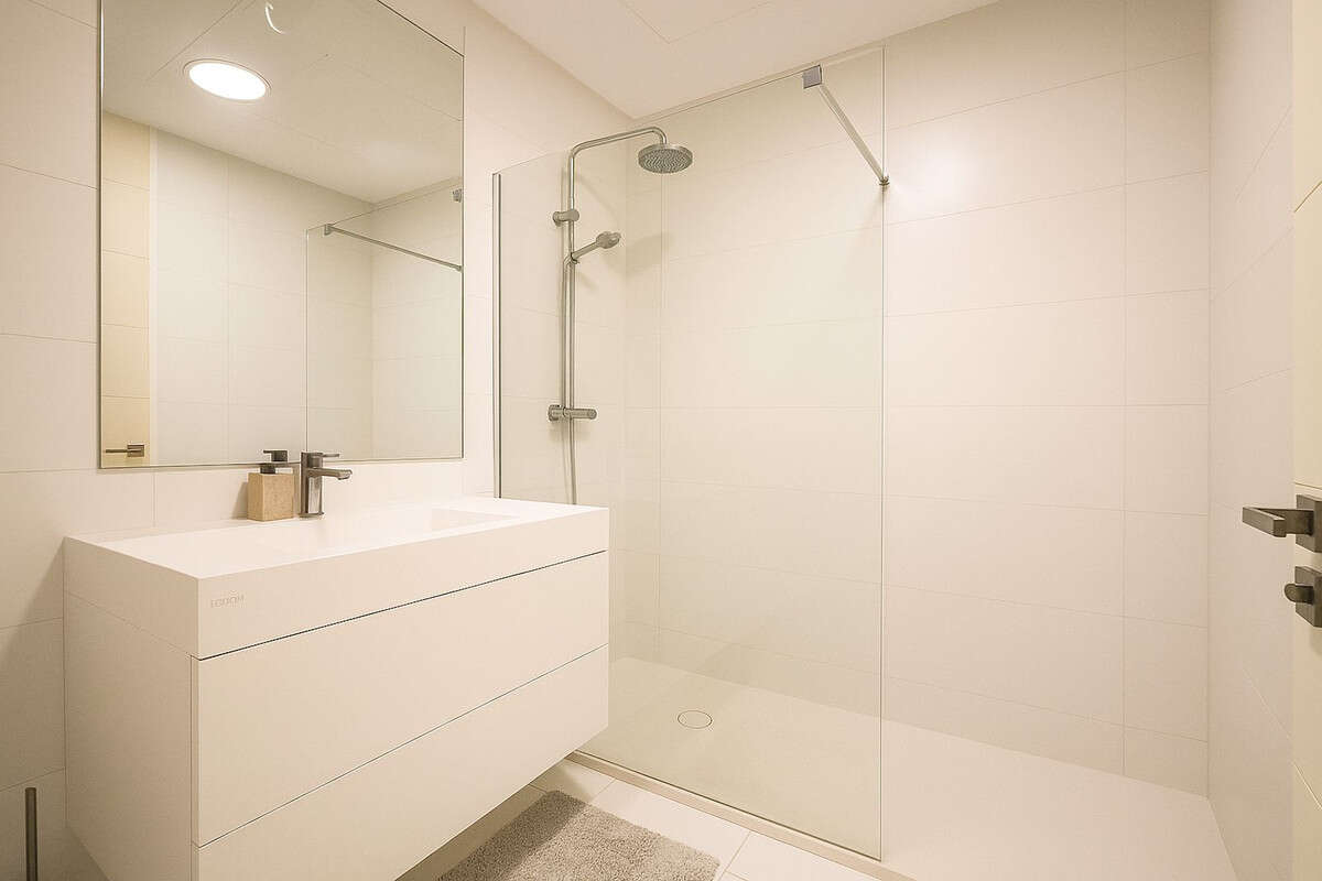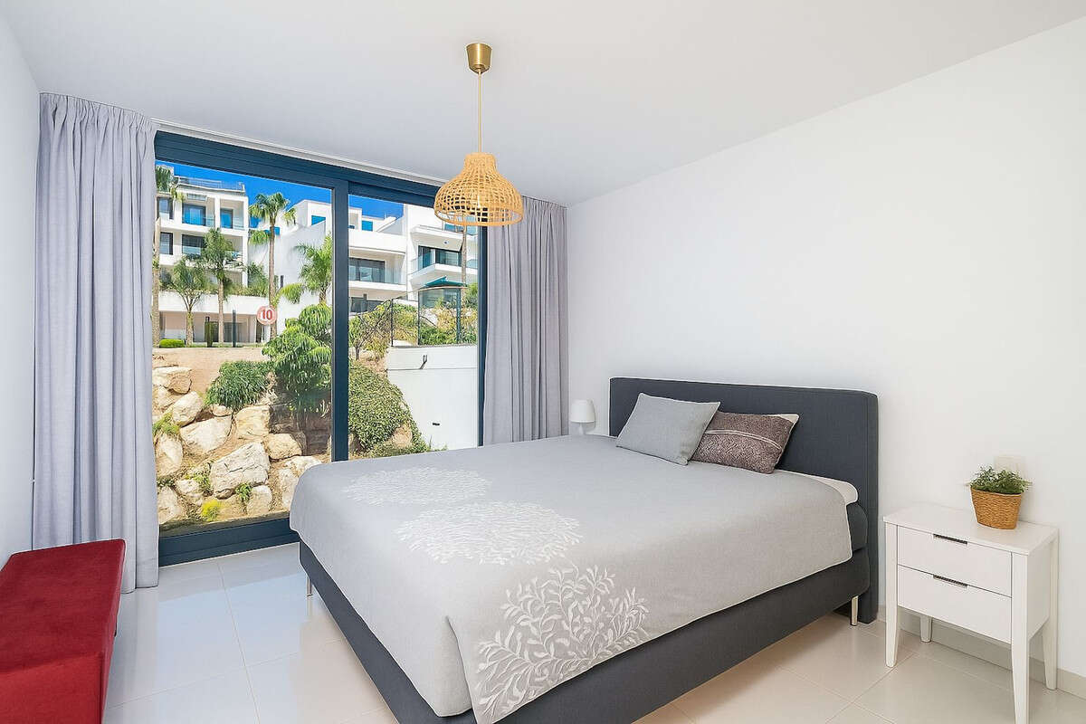 The lower level features a spacious lounge opening onto a large, sunny terrace, a sleek open-plan kitchen with utility area, and three bedrooms – including a master suite with en-suite bathroom and two guest rooms sharing a modern family bathroom. Upstairs, the property impresses with an extraordinarily large roof terrace, offering panoramic vistas of the golf course and the sea to the south side, and serene views over the communal pool to the north. Conveniently positioned within the complex, the penthouse allows for easy access to the pool area directly from the entrance side of the building. Additional features include air conditioning and an underground private parking space, a storage room. This exclusive gated community boasts beautifully landscaped gardens, a serene outdoor pool, indulgent sauna and steam facilities, a traditional hammam, and an elegant outdoor bar area designed for refined leisure and entertainment.