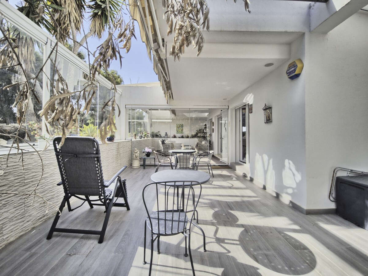 The terrace, a standout feature, has been partially converted into a light-filled conservatory with glass curtains and sliding doors, creating a versatile space to enjoy year-round. The remaining open terrace provides ample room for outdoor dining, entertaining, and soaking up the sunshine.