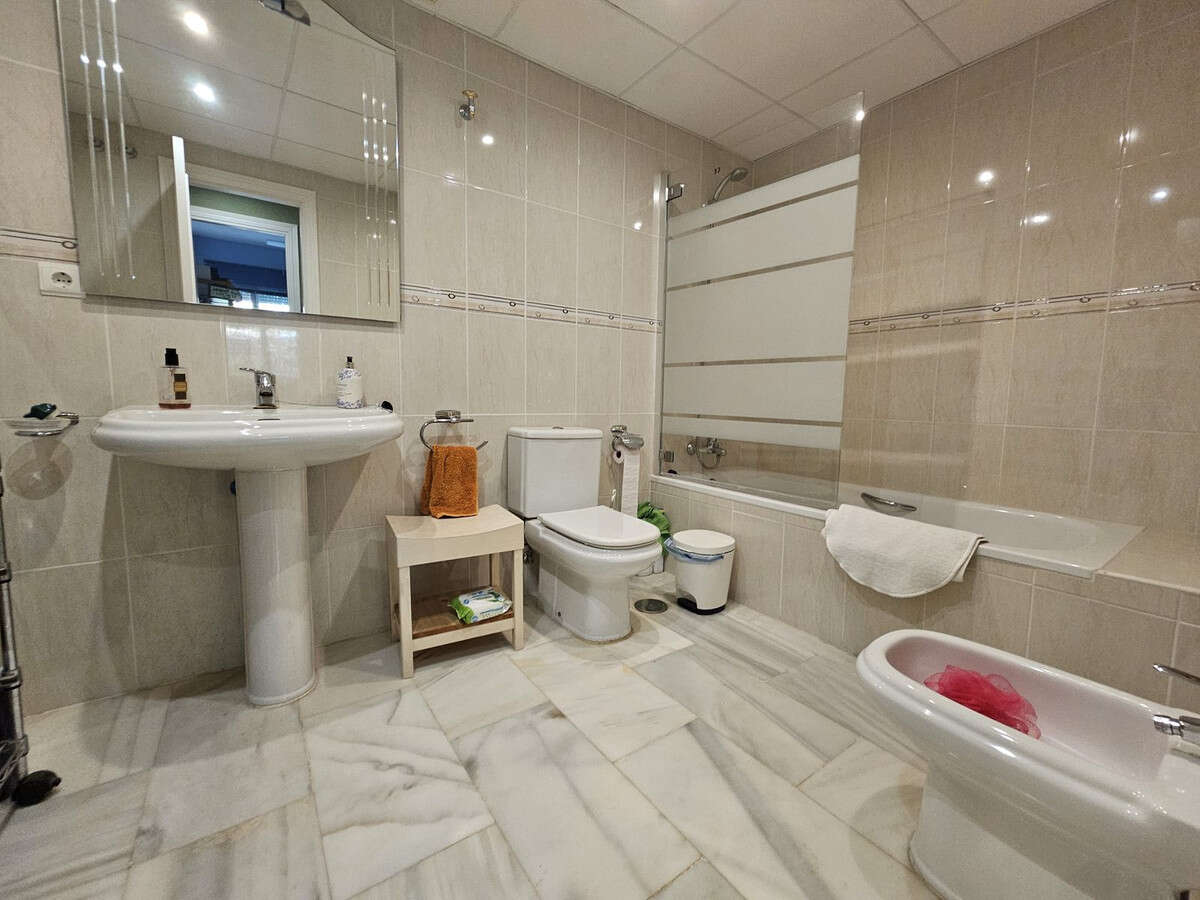 Ground Floor Apartment in 3 bedrooms | 2 bathrooms 105 m² + 30 m² terrace with glass curtains & awning Air conditioning Adapted access: ramps & lift Saltwater pools (one semi-Olympic size) Beautifully maintained gardens 5 min walk to the beach of el BOMBO Public transport also 5 minutes walking, 10 min drive to La Cala de Mijas. Perfect for families, holidays, or investment.