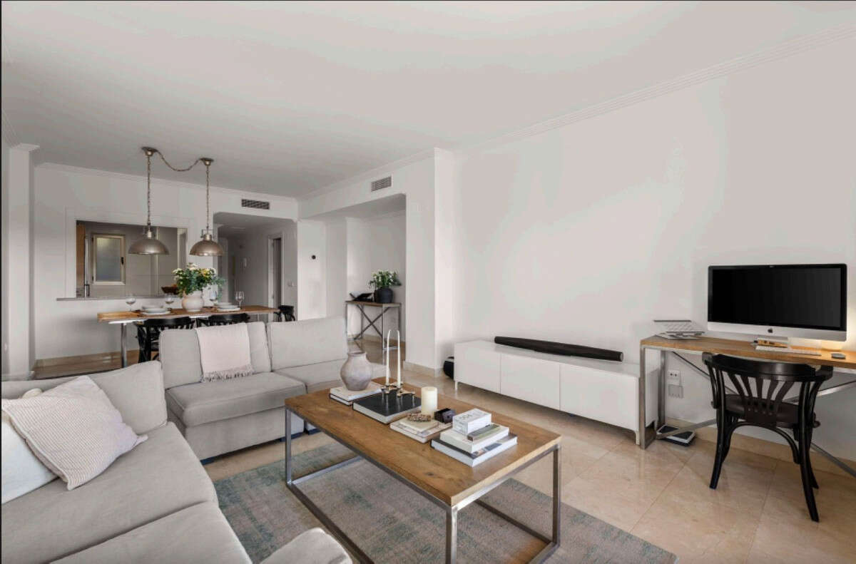 Welcome to this charming and comfortable 2-bedroom ground-floor apartment, offering beautiful views of the Mediterranean Sea and majestic mountains, situated in the prestigious gated community of Hacienda del Señorio de Cifuentes in Benahavís on the sun-drenched Costa del Sol. This secure, family-oriented resort boasts four swimming pools, stunning communal gardens, and a new gym currently under construction – all set within a low-density environment of 23 apartment blocks with plans for expansion, providing a resort-like atmosphere with 24-hour security and panoramic vistas over golf courses like Atalaya, the sea, Gibraltar, and even the African coast on clear days. Just 15 minutes from Puerto Banús' glamorous marina and the beaches, with easy A-7 access to Marbella or Estepona's historic old town, it's ideal for year-round living, holidays, or investment in Benahavís' thriving market, where similar properties see 10-15% annual appreciation and strong rental demand.