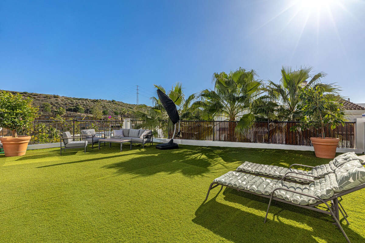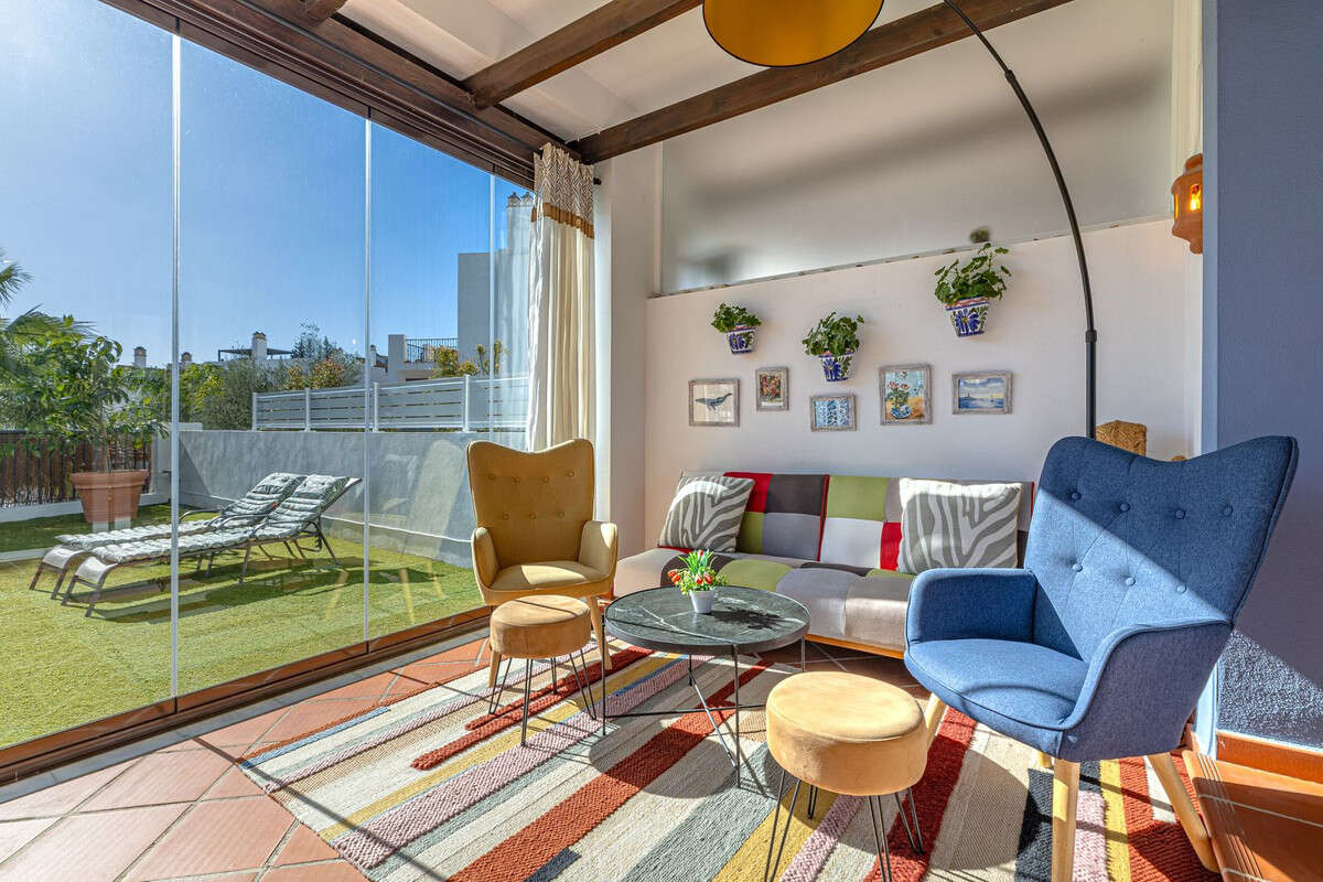 Welcome to this modern and stylish home in the popular Paraiso Pueblo in Benahavís. Here you are greeted by a bright residence with an open-plan layout where the kitchen and living room blend harmoniously together. The kitchen is tastefully designed with decorative tiling, integrated appliances, and a spacious kitchen island that creates a natural gathering point.