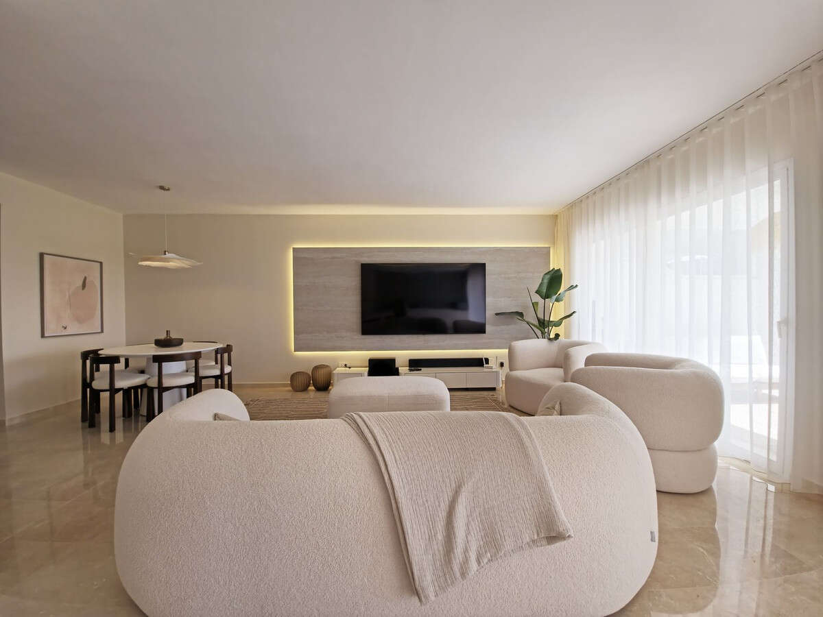 Bright and spacious 2-bedroom, 2-bathroom apartment set within the gated community of Altos de la Quinta, Benahavís, offering open views over the golf course, lake and the Mediterranean Sea.