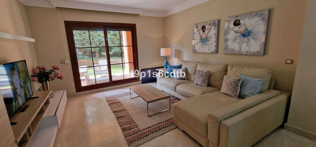 This charming 3-bedroom apartment, `placed on the ground floor with a large surrounding garden, in a gated community with 24-hour security, is perfect for families with children and those who wish to enjoy all the amenities in a quiet residential community, close to all kinds of amenities, Golf courses, the beach, Banús and Marbella. Ideally situated within easy walking distance of the Atalaya International School, wellknown supermarket and close to the country style village of Benahavis.