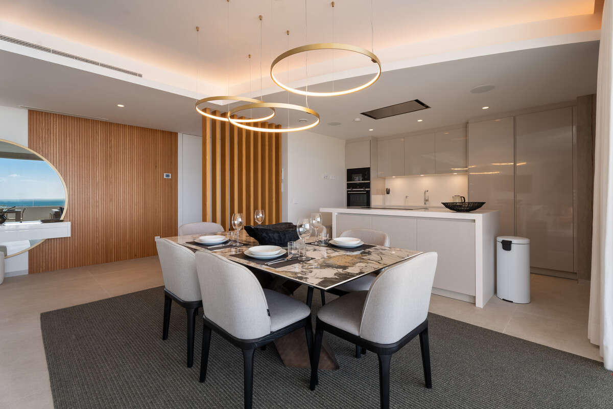 This first-floor residence enjoys breathtaking panoramic views across the Mediterranean Sea, Gibraltar and the Atlas Mountains, visible from the spacious private terrace and principal living areas. The apartment is located within a boutique block of only five residences and is a middle-end unit with just one neighbouring apartment, offering enhanced privacy and tranquillity.