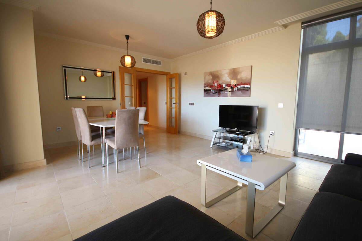 The property is in excellent condition. It has a good sized living area, modern kitchen and 2 good sized bedrooms and 2 bathrooms. Outside there is a spacious terrace of 30m2, with panoramic views over the golf resort, sea and mountains.