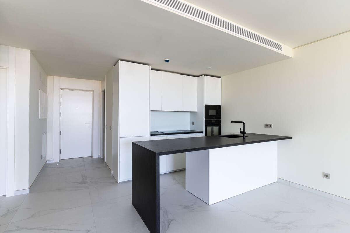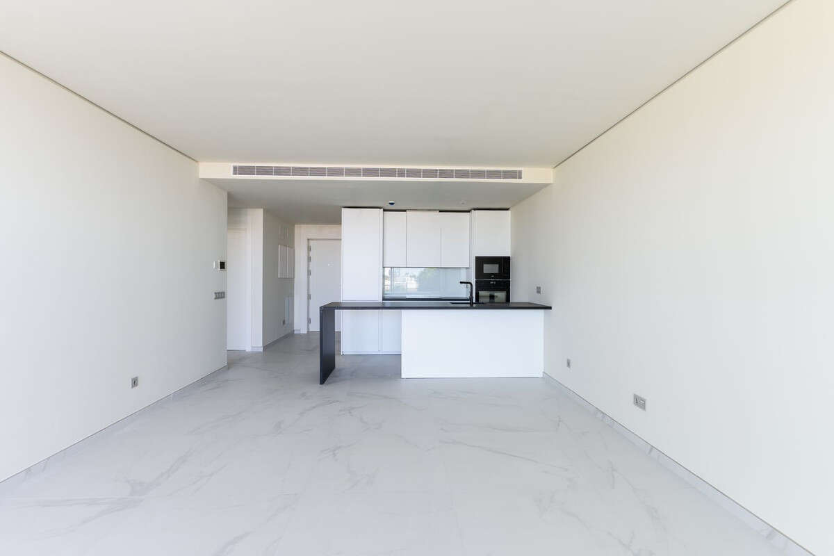 Inside, the property is equipped with a fully fitted kitchen, double glazing, and an advanced alarm system, ensuring both functionality and security. The apartment is offered unfurnished, allowing new owners to personalise the space to their taste. Additional amenities include a communal garage with parking spaces, as well as access to a co-working space and concierge service, catering to modern lifestyles.