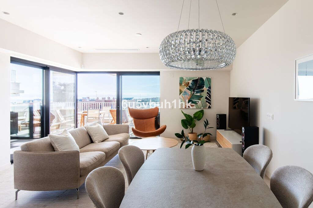 Welcome to this bright and stylish three-bedroom apartment, located in a high-quality residential community completed in 2019. This exceptional corner and through-apartment benefits from natural light entering from three different directions. Two of the bedrooms has an ensuite bathroom with underfloor heating and third has it's own balcony. The property boasts stunning sea views, and the spacious west- and south-facing terrace provides the perfect setting to enjoy sunshine throughout the day and beautiful sunsets.