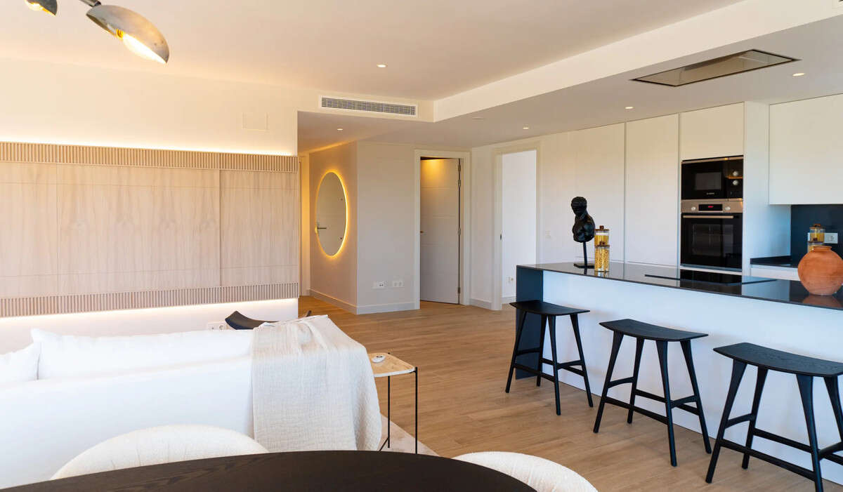 This development offers bright, spacious homes with large terraces designed to maximise natural light and enjoy the surrounding beauty. Each apartment includes high-end finishes, Porcelanosa porcelain floors, Bosch kitchen appliances, Technal windows for optimal insulation, central hot and cold air conditioning, lift access from underground parking, and a private storage room.