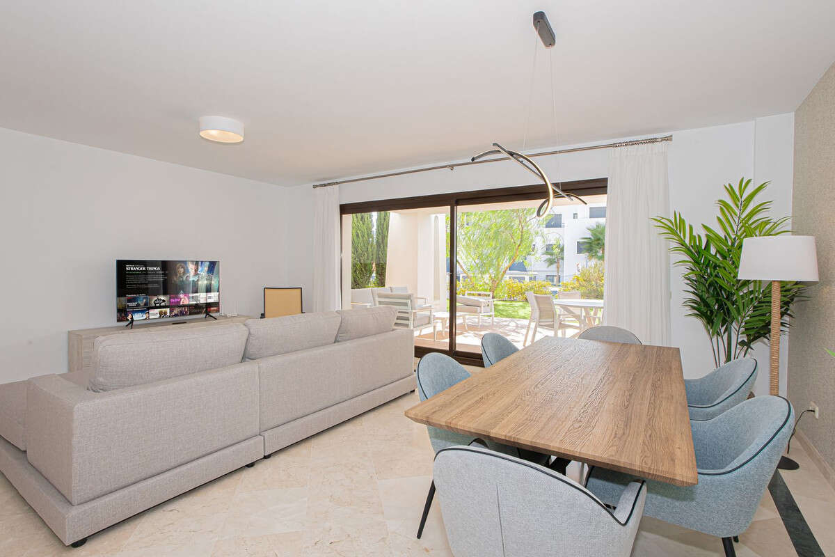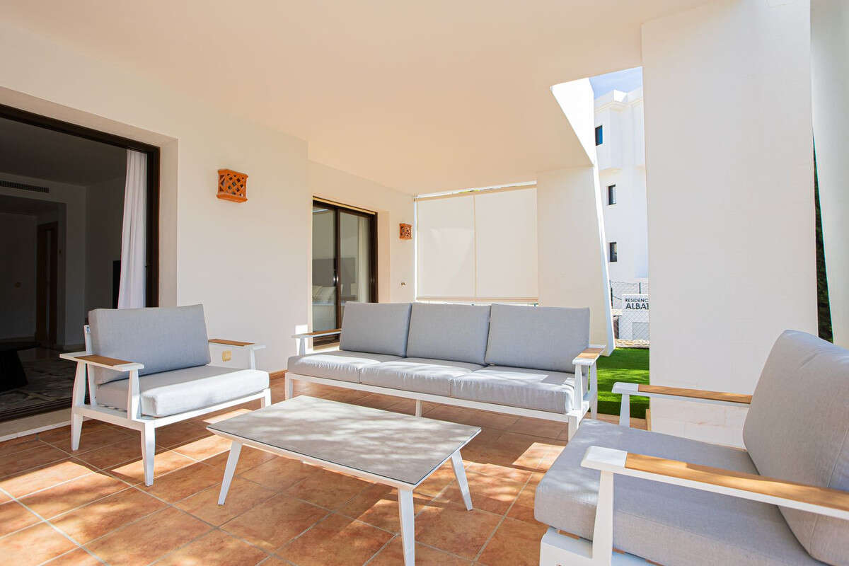 Quality ground floor 3 bedroom, 3 bathroom apartment with large outdoor covered terrace and garden - with Astro-Turf for easy maintenance.