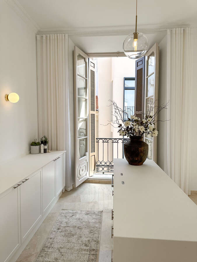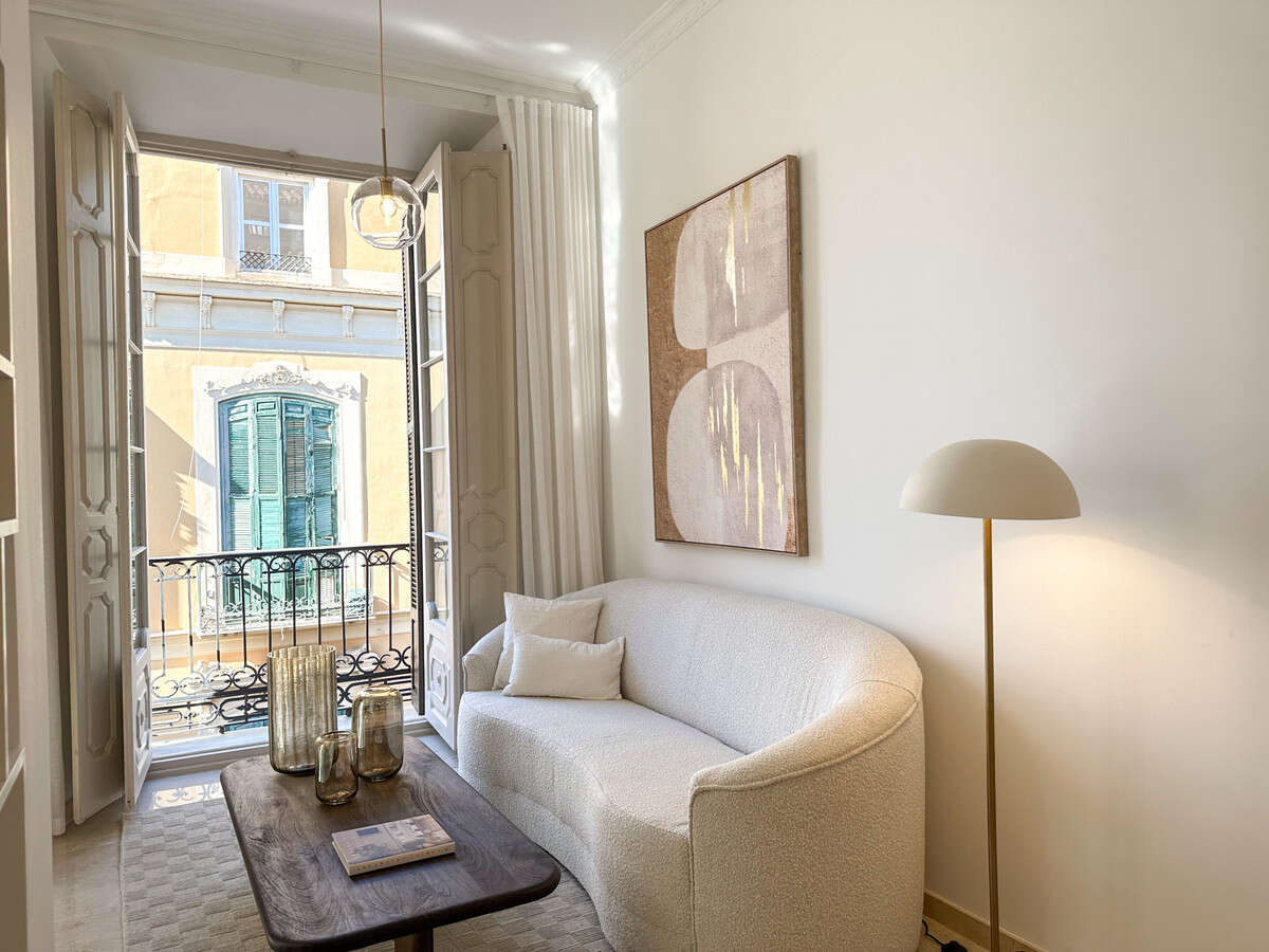 Beautifully presented apartment situated on the third floor of an outstanding building designed by the renowned architect Geronimo Cuervo, famed for the iconic Teatro Cervantes. Facing southeast, the property enjoys an abundance of natural light. Its meticulous design, featuring soaring ceilings and 5 French balconies, exudes both elegance and luxury. Recently renovated with the best qualities, the dwelling comprises a spacious living room, dining area, open plan fully-equipped kitchen with island, 2 ample bedrooms, a smaller bedroom/office room and a complete bathroom.