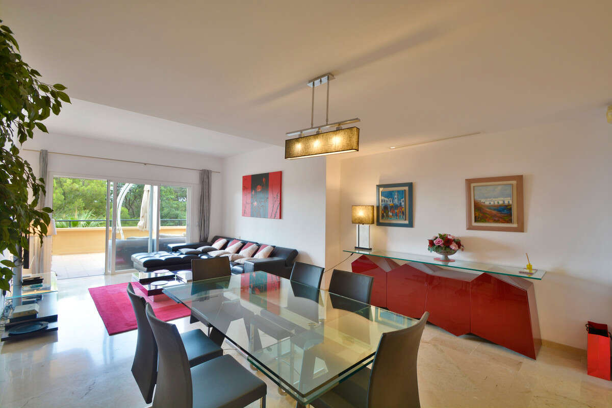 Apartment for sale in Elviria, Marbella. This fantastic apartment located on the front line of the Greenlife golf course with views of the golf course and partial sea views, has three large bedrooms with fitted wardrobes, three full bathrooms, two of them en-suite, large living room with access to the terrace, fitted and equipped kitchen with laundry room, 39m2 terrace with views of the golf course and partial sea views, garage space and storage room included. Surrounded by well-kept gardens and several community pools. Very close to all amenities, since, five minutes away is the Elviria shopping centre where you can find restaurants, banks, pharmacies, etc. and also a short distance from the best beaches in the area where you can enjoy its wonderful beach restaurants. Easy access to the A-7 Highway. Just 10 minutes from Marbella Old Town and Puerto Banús and 35 minutes from Malaga International Airport. DS1