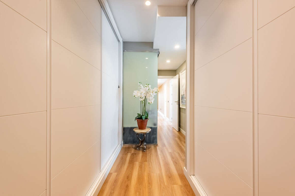 The apartment is a bright corner unit with two terraces facing south and east, allowing you to enjoy the sun from morning until afternoon. From here you can overlook the stylish pool area, creating a serene, resort-like atmosphere in the middle of the city. The open-plan layout connects the spacious living room with the modern kitchen, offering a seamless flow and a welcoming social space. With four bedrooms and three bathrooms, there is plenty of room for family and guests, all designed with a sense of style and comfort.