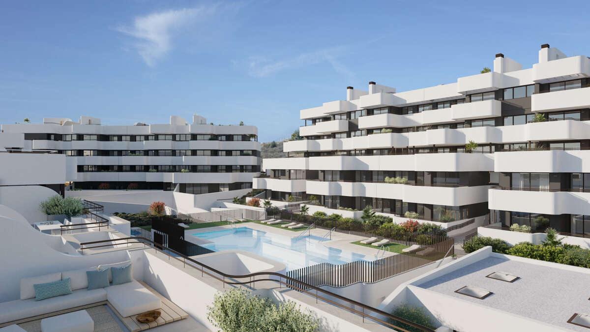 The development, built in 2025, offers unbeatable communal areas: adult and children's swimming pools, fully equipped gym, sauna, landscaped gardens, bicycle area, and accessible entrances for all residents. The building has an elevator and universal accessibility.