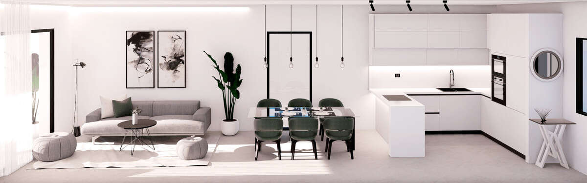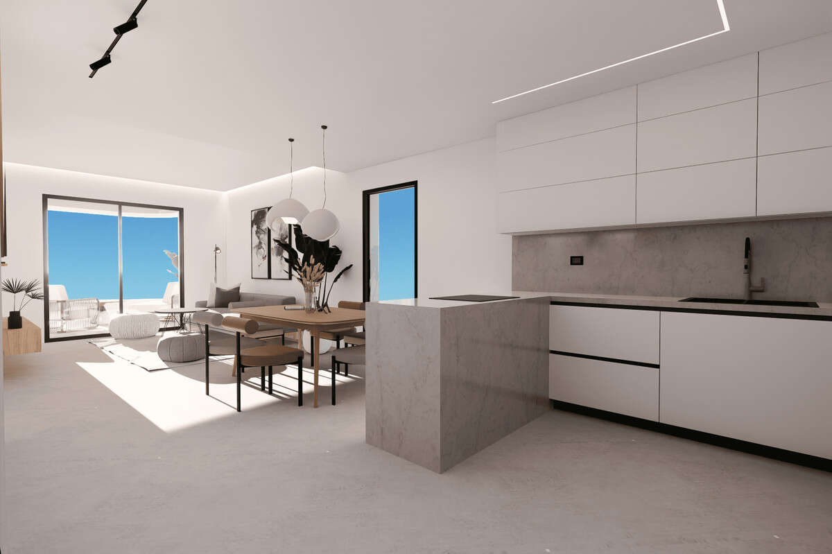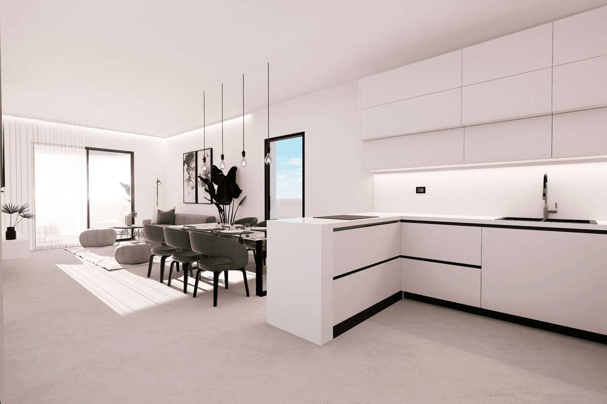 We present its new unique and exclusive residential development in Finestrat-Benidorm with 2 bedrooms and 2 bathrooms with large day area, panoramic views of the city of Benidorm and the Mediterranean Sea and natural light throughout the house thanks to its side windows.