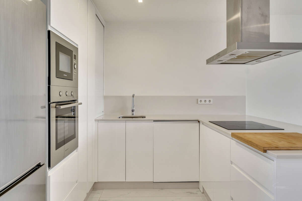 Designed for elegance and functionality, this duplex features: A bright living and dining area with seamless access to a semi-covered terrace, ideal for al fresco dining and relaxing. A fully equipped open-plan kitchen with a compact quartz island, perfect for entertaining. A luxurious main bedroom with sea views, terrace access, an en-suite bathroom, and a walk-in dressing room. A second bedroom at the rear, with a nearby bathroom for added convenience. A utility cupboard equipped with a washer and dryer for practical living. The property includes a private 68 sqm solarium, offering a tranquil space to enjoy stunning sea views and the natural beauty of the Costa Blanca.
