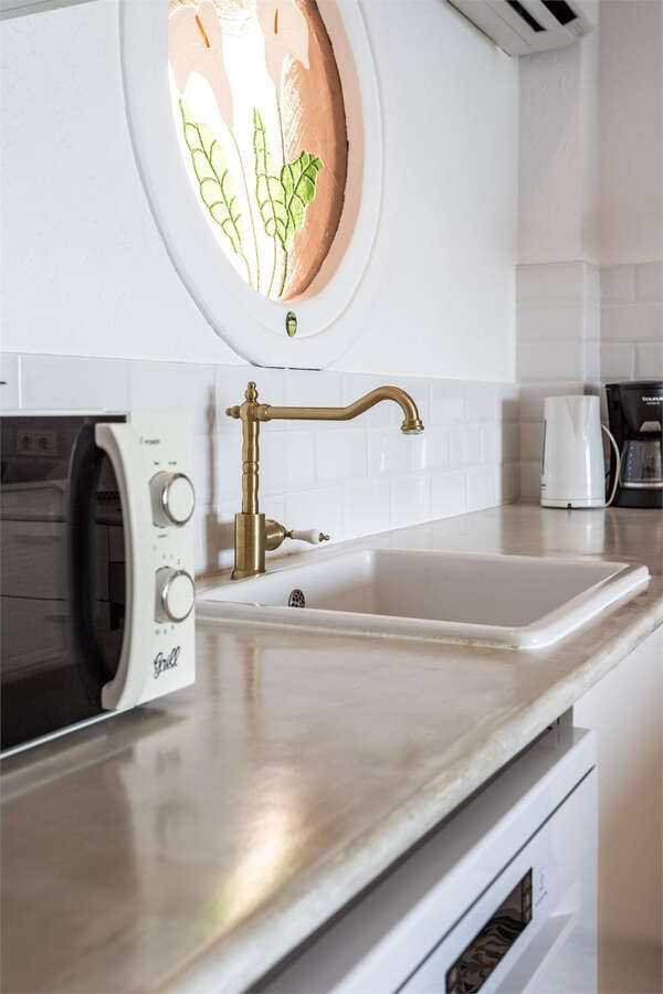With a living area of nearly 90 m², the apartment stands out with its spacious living room in open plan with the kitchen, creating both a sense of space and a social atmosphere. From the living room you step out onto the sunny terrace, the perfect spot to enjoy your morning coffee with the sound of the waves in the background. An additional terrace at the back provides shade and coolness during the warmest hours of the day – the ideal balance between sun and comfort.