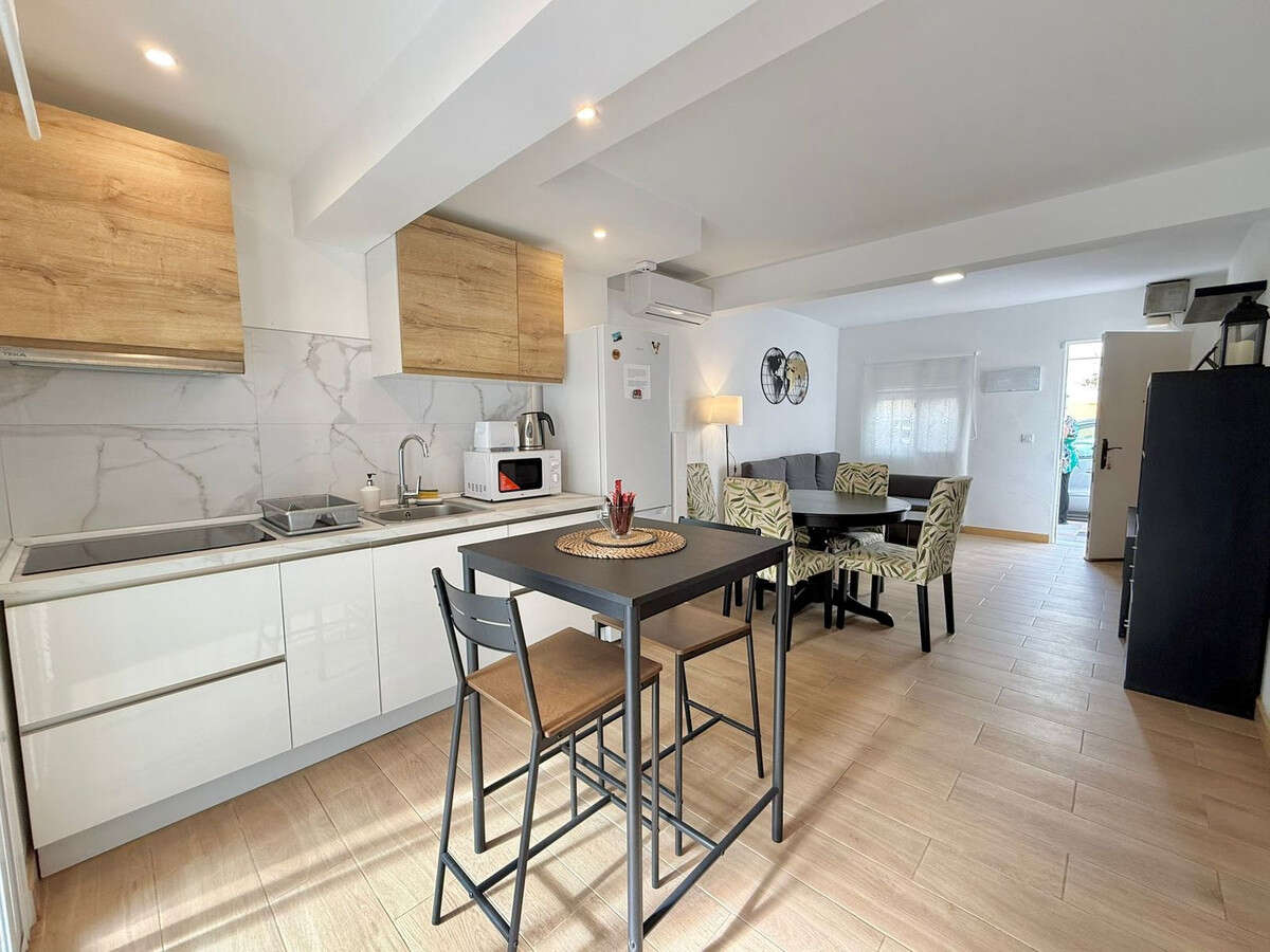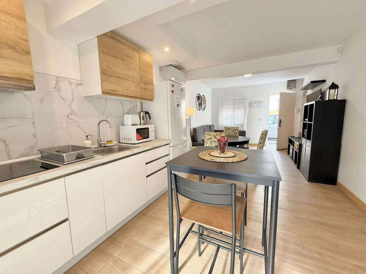 Charming Andalusian-style ground floor apartment with 2 bedrooms and 2 bathrooms in the center of Fuengirola, just 3 minutes walk from the beach and 8 minutes from the train station and all services. This apartment, recently renovated, has a sunny patio, equipped kitchen, master bedroom with en-suite bathroom and a second full bathroom. Ideal for living or vacations near the sea on the Costa del Sol. In addition, it stands out for not having community fees.