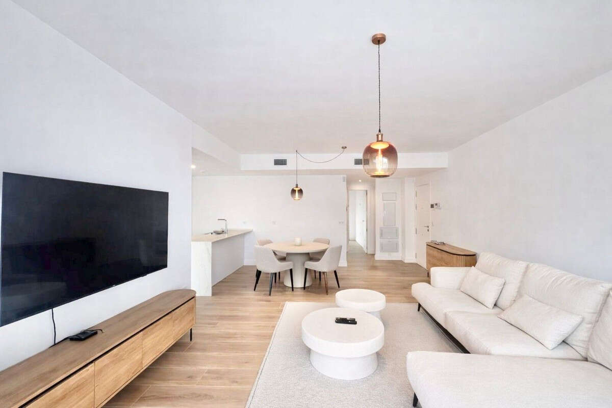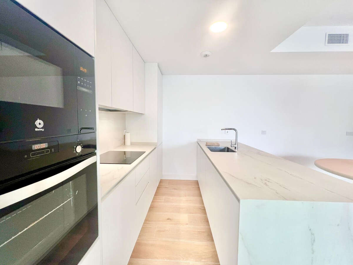 Magnificent south-facing luxury apartment located in the prestigious El Higuerón residential community. This exclusive property perfectly combines contemporary design, spacious living areas, and comfort. It features three bedrooms and two bathrooms, including a superb master bedroom with en-suite bathroom. The bright and airy living-dining area flows seamlessly into a modern open-plan kitchen, fully fitted and equipped with high-quality appliances. The apartment boasts a fantastic 25 m² terrace, ideal for relaxing or entertaining outdoors, offering pleasant partial sea and urban views. Additional features include hot and cold air conditioning, a home automation system, video intercom, fitted wardrobes in all bedrooms, and pre-installation for an alarm system, ensuring maximum comfort and security. The property also includes two parking spaces and a storage room, providing added convenience. An ideal residence for those seeking exclusivity, quality of life, and a prime location on the Costa del Sol.