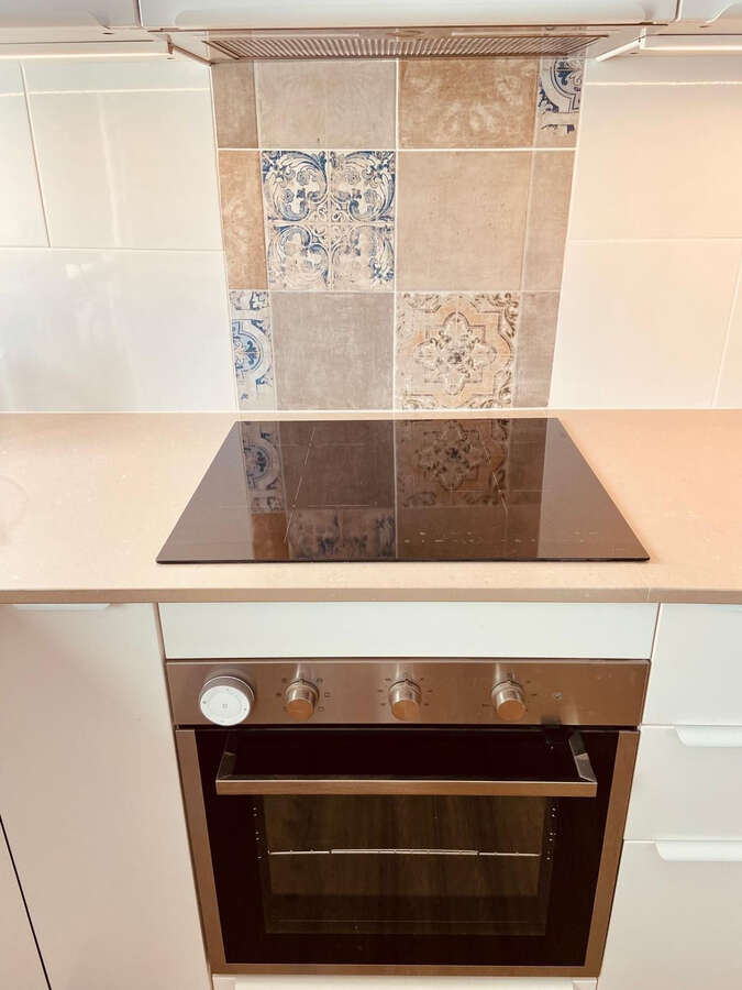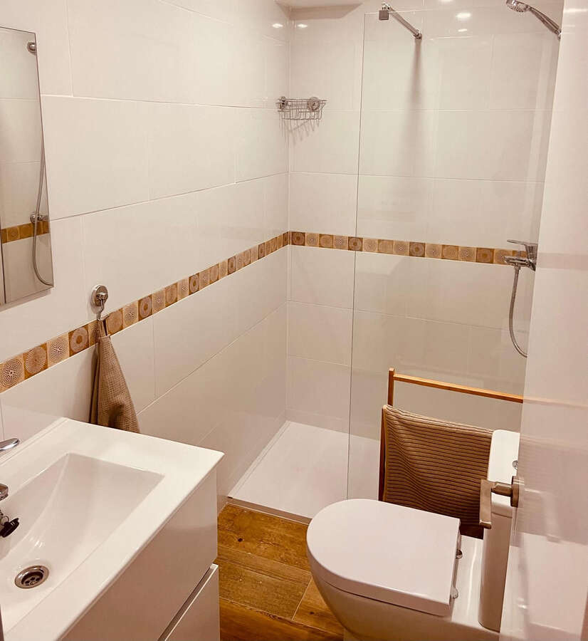 This apartment was completely renovated in a Boho Ibiza style, featuring a bright white and natural wood design that creates a warm, modern, and relaxing atmosphere.