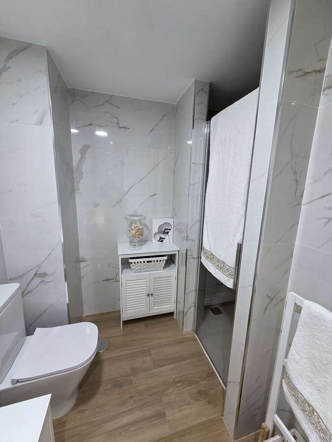 Excellent apartment just steps from the beach, fourth floor with a 36 m2 terrace overlooking the community gardens. Completely renovated, it currently has 3 bedrooms with wardrobes, 2 bathrooms, and a living-dining room with wooden floors and air conditioning. Everything is in excellent condition, and the kitchen is fully equipped. Ready to move in, ideal for holidays or permanent living. Don't hesitate to visit and arrange an appointment.