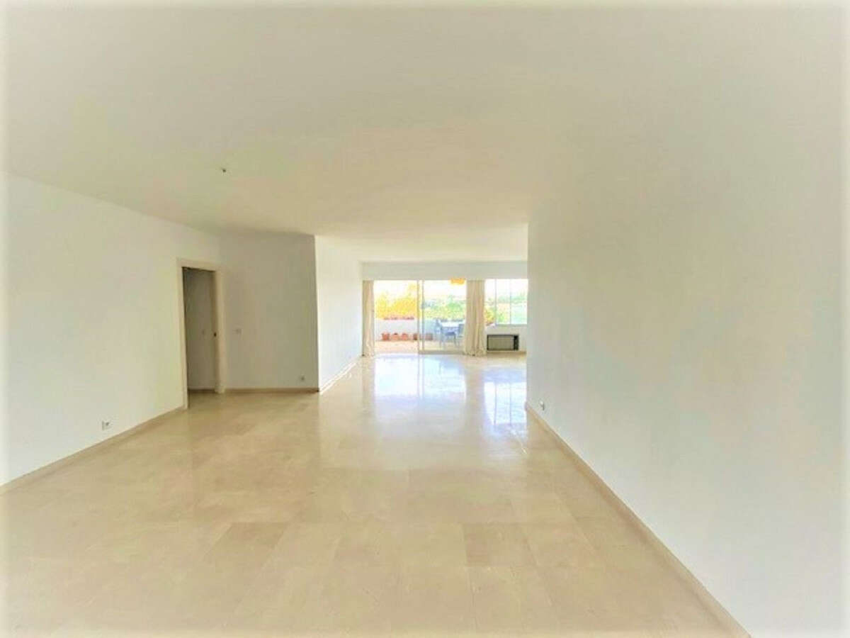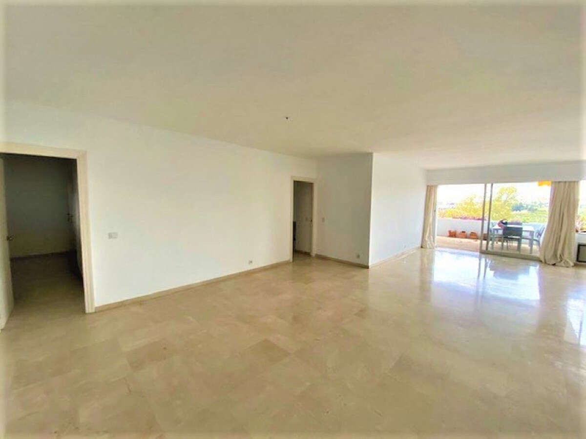 Impressive top-floor apartment surrounded by golf courses, with beautiful panoramic views. The home features a spacious and bright entrance hall, a 60 m² living-dining room with a fireplace and direct access to the terrace with open views of the sea and golf courses. There are 3 double bedrooms with en-suite bathrooms, all with large built-in wardrobes, a fully equipped kitchen, and a laundry area.