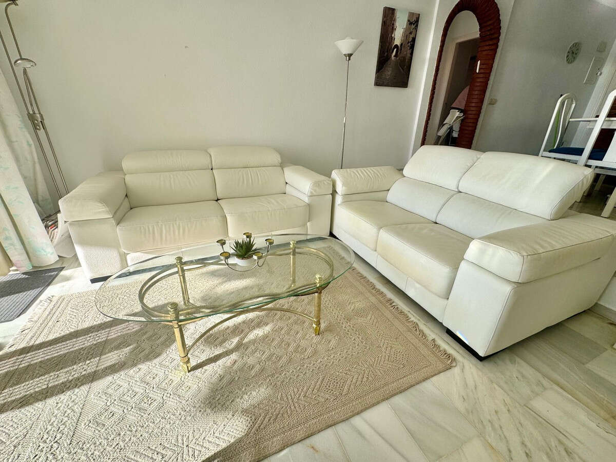 This bright and airy corner apartment offers excellent potential for modernisation and enjoys impressive sea views. A spacious terrace, accessible from both the living room and main bedroom, flows directly into a secluded garden area, creating a tranquil and secluded outdoor space.
